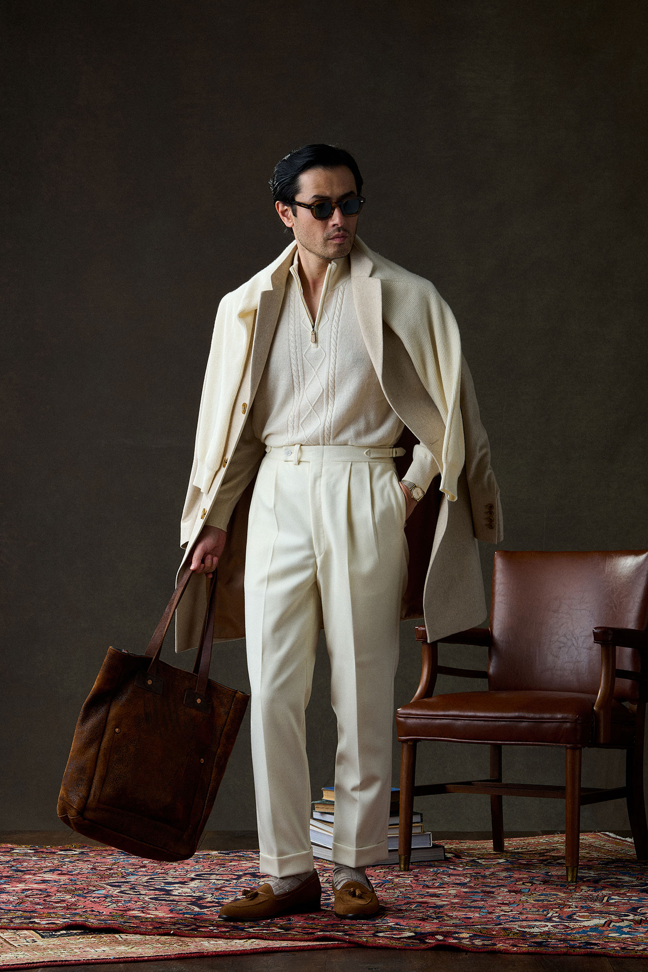 Custom Cream Flannel Trouser -  Holland & Sherry