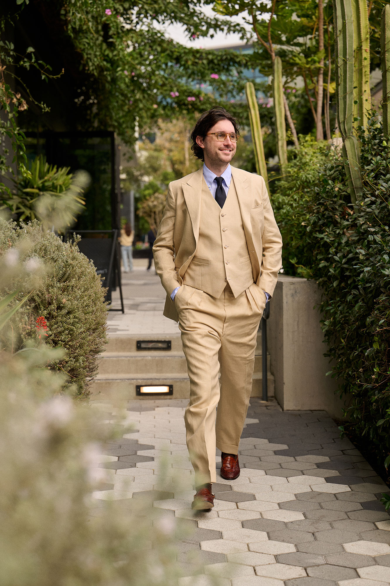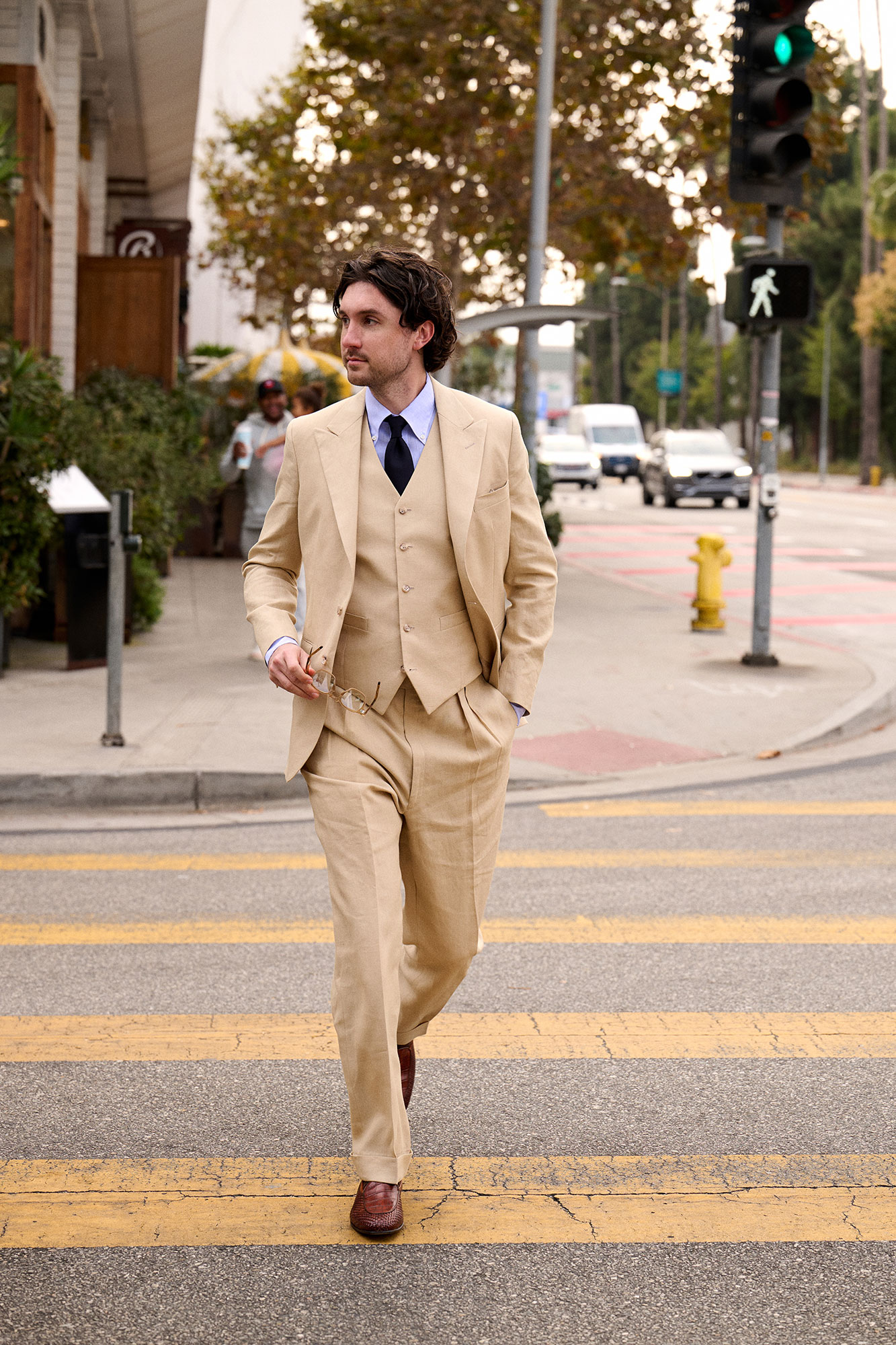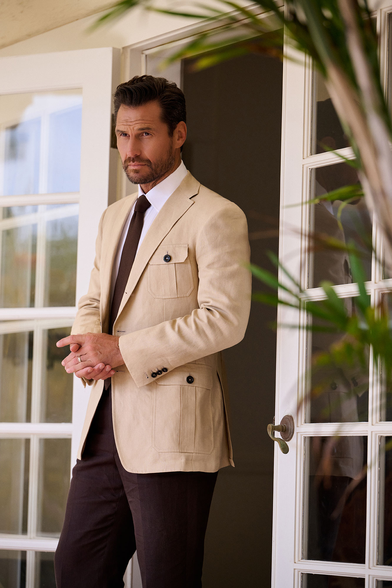 Tan Crushed Linen Suit