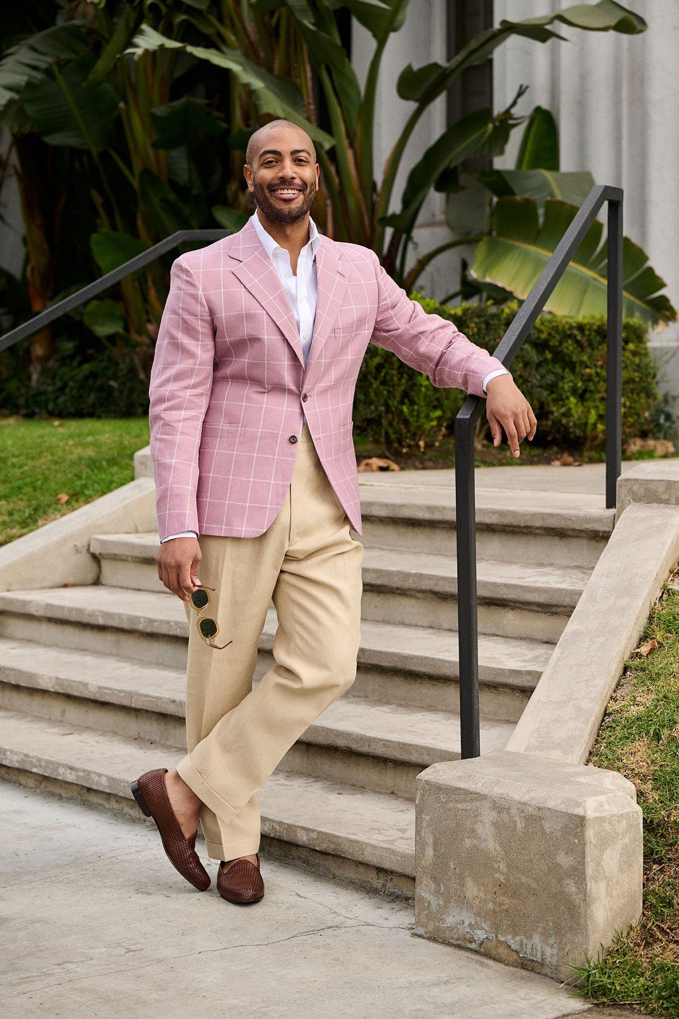 Pink Crushed Linen Windowpane Sport Coat