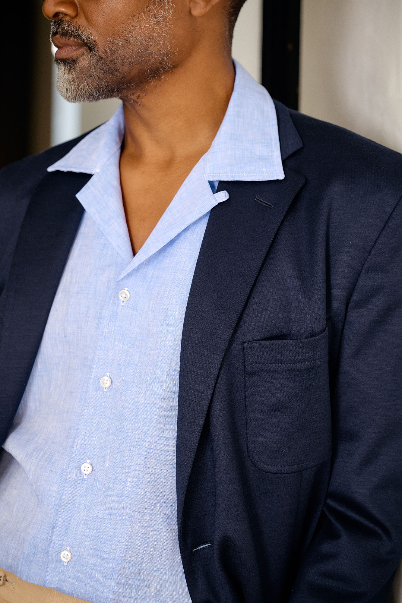 Blue Linen Camp Shirt