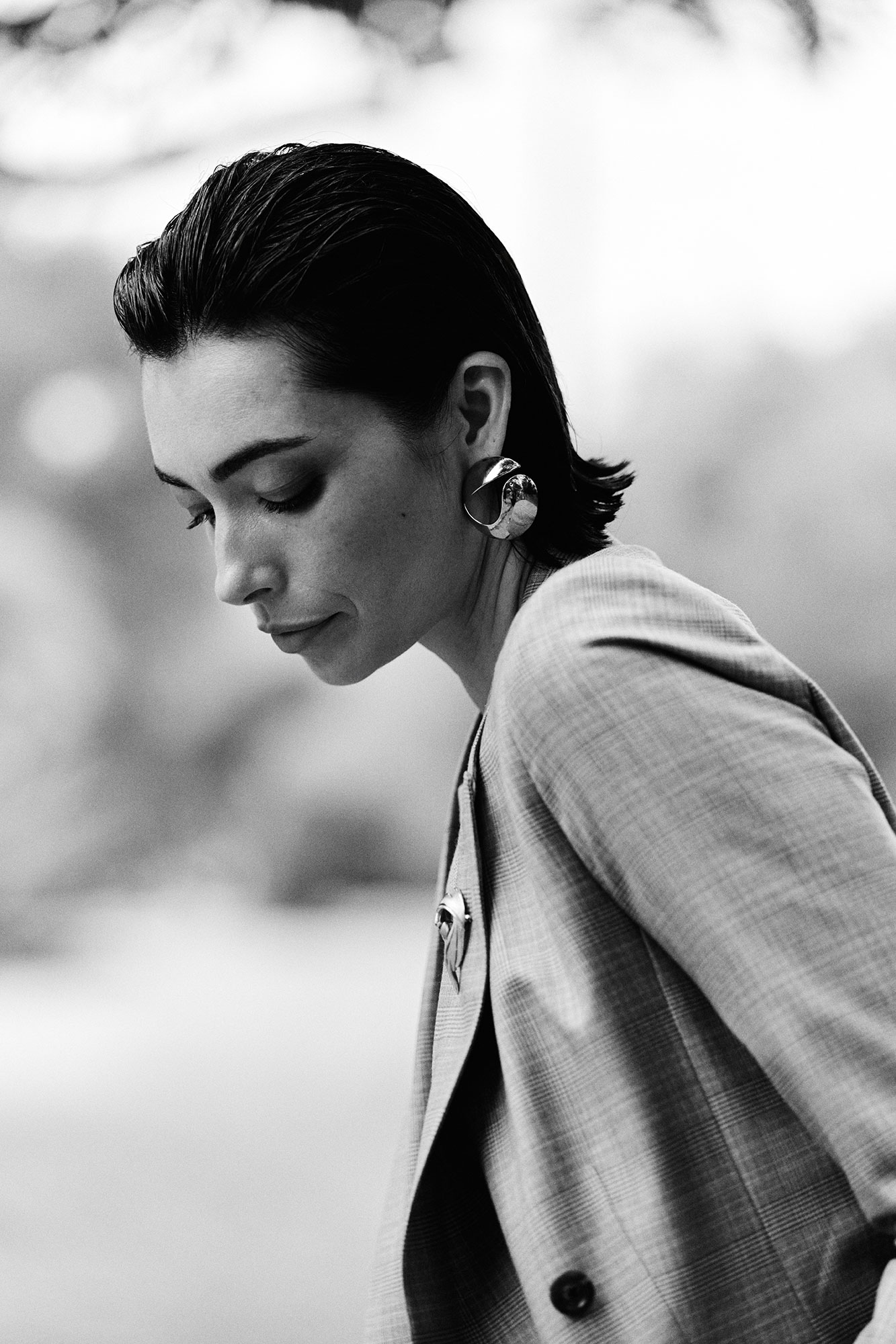 The Charlie jacket in gray plaid delivers classic tailoring with modern refinement. Featuring a structured silhouette, peak lapels, and dark brown buttons, it adds polished sophistication to any wardrobe.